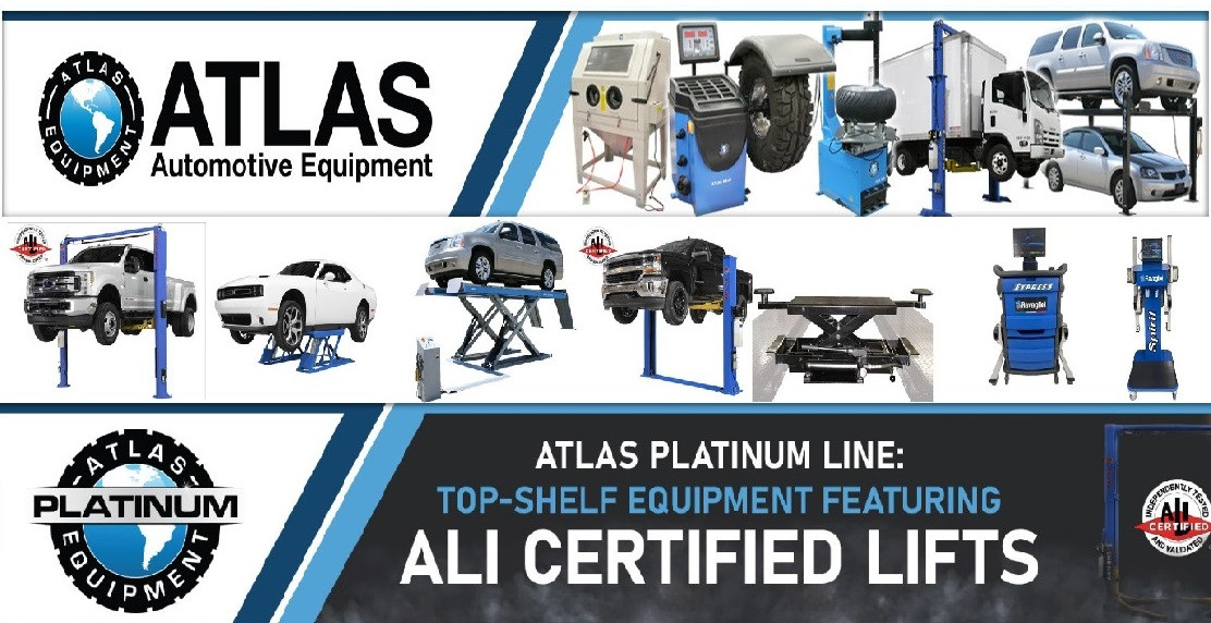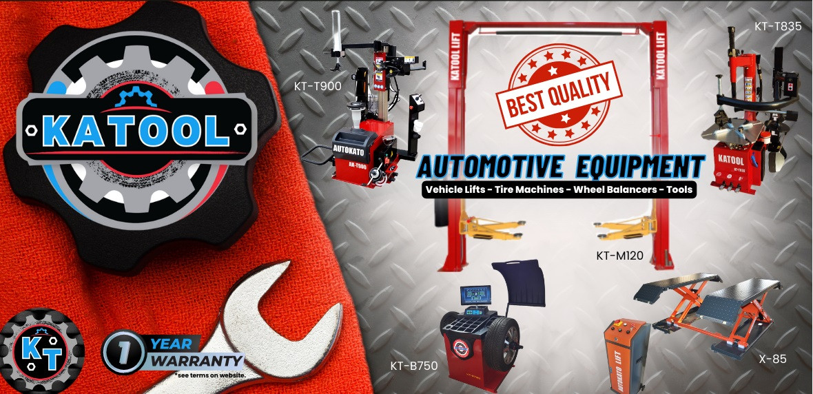 Automotive lifts of all kinds, Tire Changers and Balancers, Wheel Aligner, Brake Lathes, Pipe Benders, Air Compressors, Oil Filter Crushers, Spray Wash Cabinets, Tire Vulcanizers, Jacks of all kinds, Tool Boxes, Work Benches, Shop Presses and much, much more.