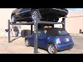 The Atlas® 408-SL super deluxe portable vehicle storage lift is designed for those car enthusiasts who demand the absolute best look and superior quality. The Atlas® 408-SL has all the great features of our Atlas® Garage Pro Series 4 post hobbyist lifts, but incorporates many features found only on our Atlas® commercial grade 4-post lifts. All columns incorporate two special bends which help to increase the column strength. These strategic bends also increase the surface area for the slide block to travel. Horizontal cables are “hidden” inside of the cross tubes. Professional grade wheel covers are used to eliminate almost all exposure of cables and double lock system.The Atlas® 408-SL has “more metal” and weighs over 100 lbs. more than other hobbyist lifts based upon the same column and runway configuration.