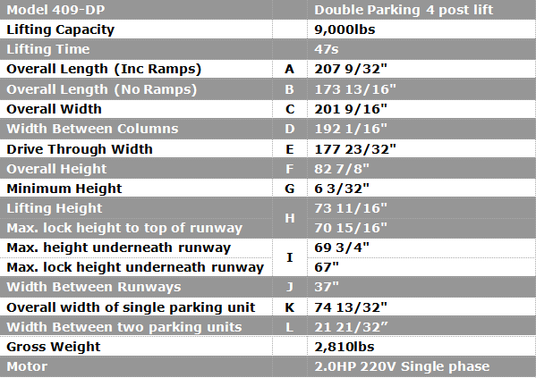 AMGO 409-DP Double Parking 9,000 Lb cap. 4-Post Parking Auto Lift