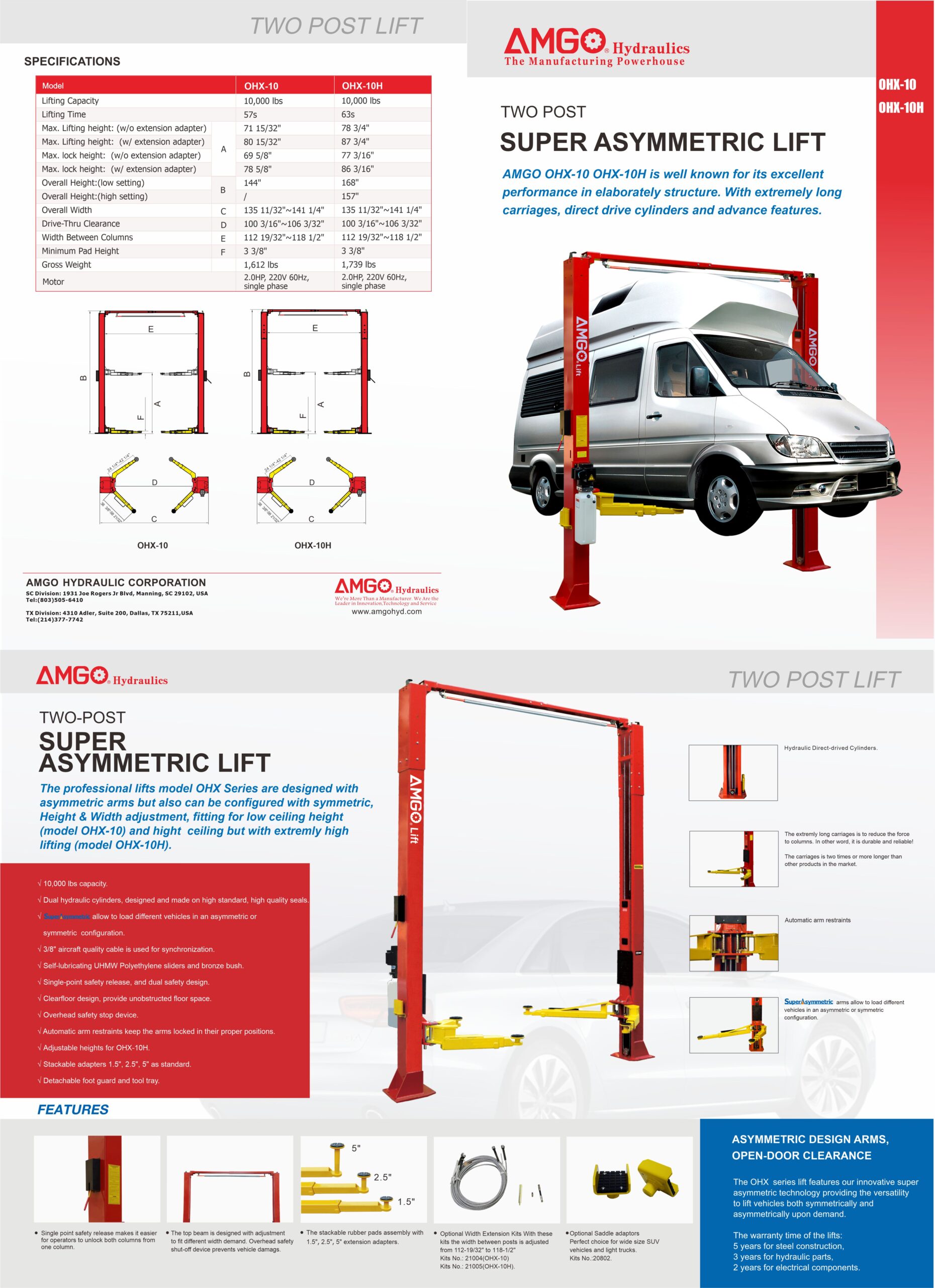 AMGO OHX-10 10,000 Lbs clear-floor Asymmetric 2-post Lift