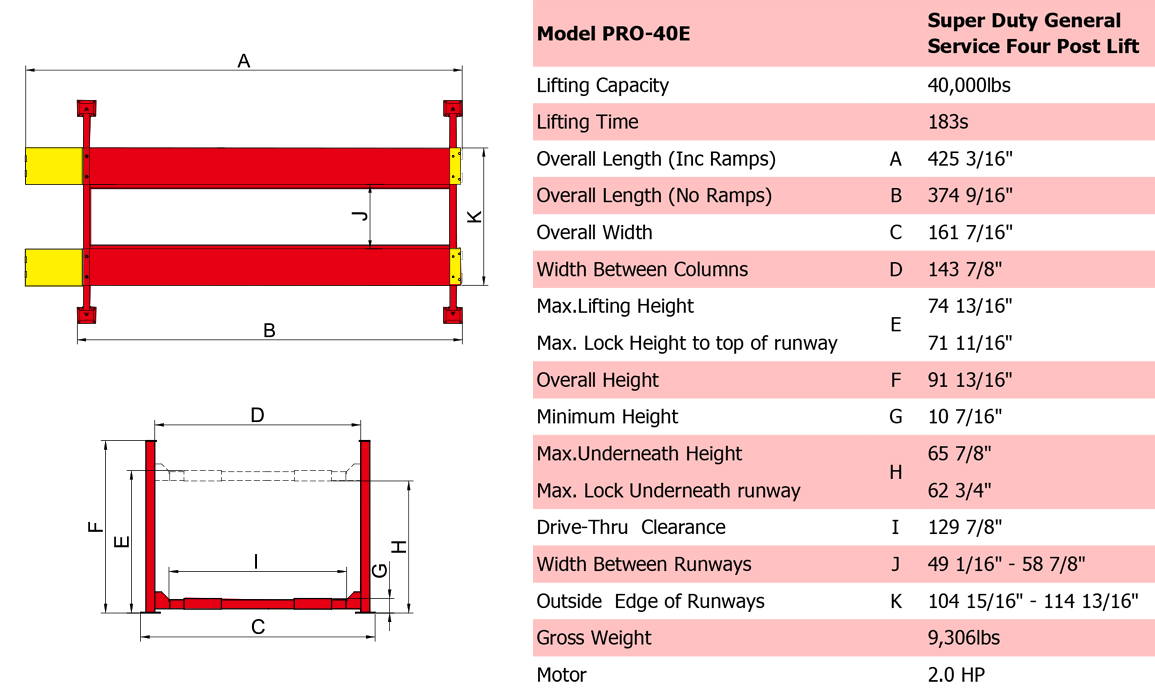 The ultimate solution of super-duty lifting. It encompasses all the advanced capabilities of the PRO-40, with an additional 59″ length to cater to exceptionally long vehicles.