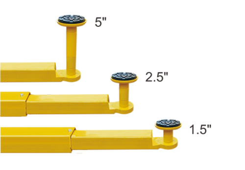 - The stackable rubber pads packaged with 1.5″, 2.5″, 5″ extension adapters.