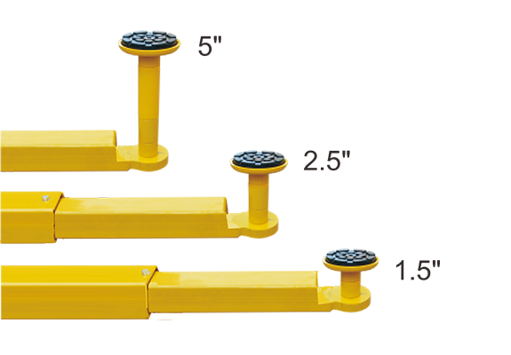 - 4 three-stage arm design allows to lift vehicles from short to long wheel base