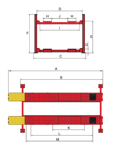 4-Post Lift Alignment Model, 14,000 Lifting capacity, includes air release safety locks, mechanical self locking device and cable breaking protection. Adjustable turnplate pockets and extra long rear slop plates.