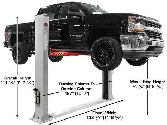 The Atlas Platinum PVL-9BP is an ALI CERTIFIED, 9000 LB capacity, base-plate two-post lift designed for professional service centers. The open-top design of this lift makes it ideal for garages with low ceilings. The total column height is 111 1/8" (9' 3 1/8"). The Atlas Platinum PVL-9BP can lift a range of the most common vehicles on the market, both foreign and domestic, while also having the capacity to handle both full-size pickups and is backed by one of the Industry’s best warranties.